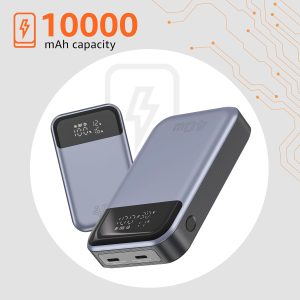 Experience fast and efficient charging with this 10000mAh power bank, featuring dual output with type C providing PD20W + 20W fast charging. The LED display shows the precise remaining power percentage for real-time updates. Its broad compatibility supports mobile phones, tablets, AirPods, Bluetooth headphones, smartwatches, and other low-current devices. In-built device protection ensures safety with short-circuit, overload, and over-charge protection. Enjoy 20W fast charging with compatible cables and extended power on the go.