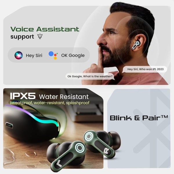 | Special Feature | Dual Device Connectivity, Sweatproof, Ultra-Low Latency Gaming ear buds, Lightweight, 60H Playtime, 4 Mics Clear Calling earbuds, Built-In App Support TWS, Fast Charging, Microphone Included, Touch Control |
