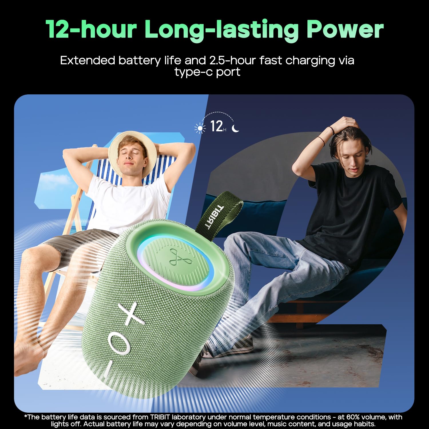Tribit StormBox Mini 12W 5.4 Bluetooth Wireless Speaker,360°Surround Sound,Built-in XBass,LED Lights,12H Playtime/Travel Green